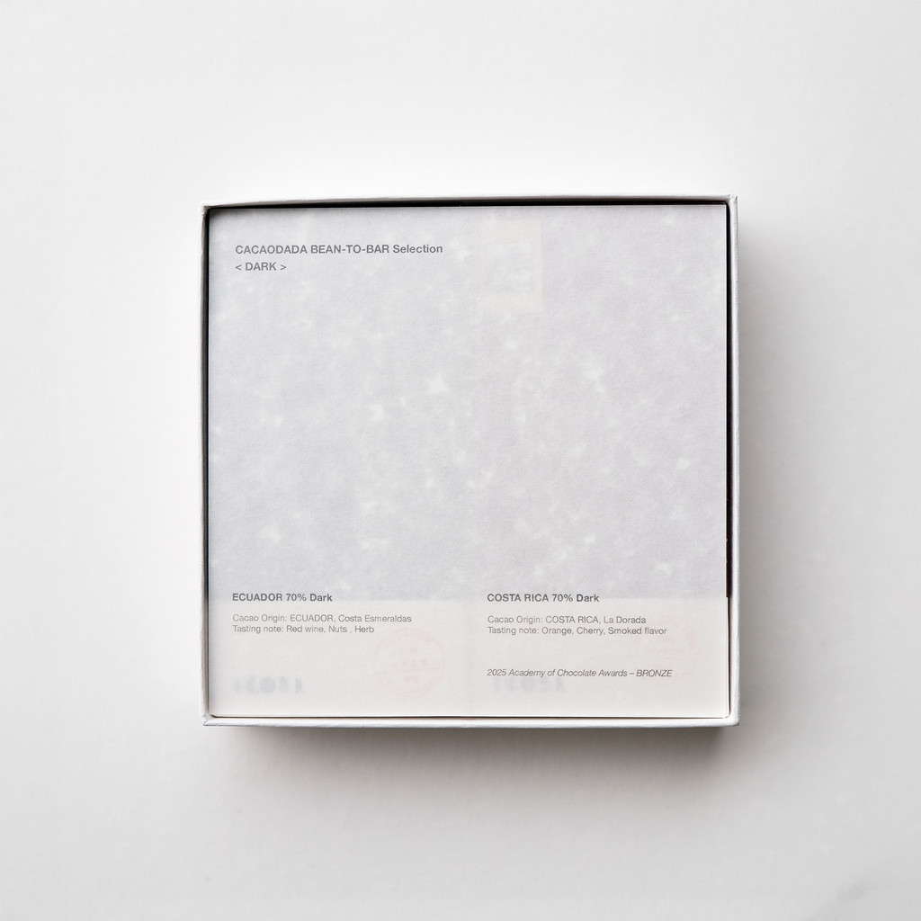 두 초콜릿은 서로 다른 스타일이지만, 각각의 개성이 분명하고 함께 즐겼을 때 카카오빈에 대한 실험성과 클래식함이라는 카카오다다의 방향성을 가장 잘 보여주는 조합입니다.