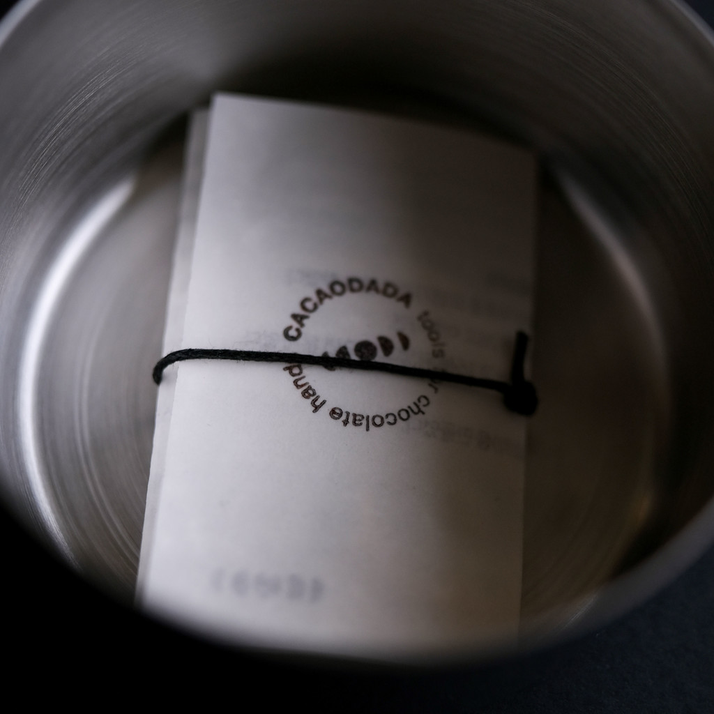 스테인리스 표면은 윤형원이 사포로 하나씩 직접 연마해(Hairline Finish) 의도적인 결을 남겼습니다. 균일하지 않은 이 결은 크래프트초콜릿의 쓰임과 시간에 따라 달라지는 표정을 표현하고자 했습니다.